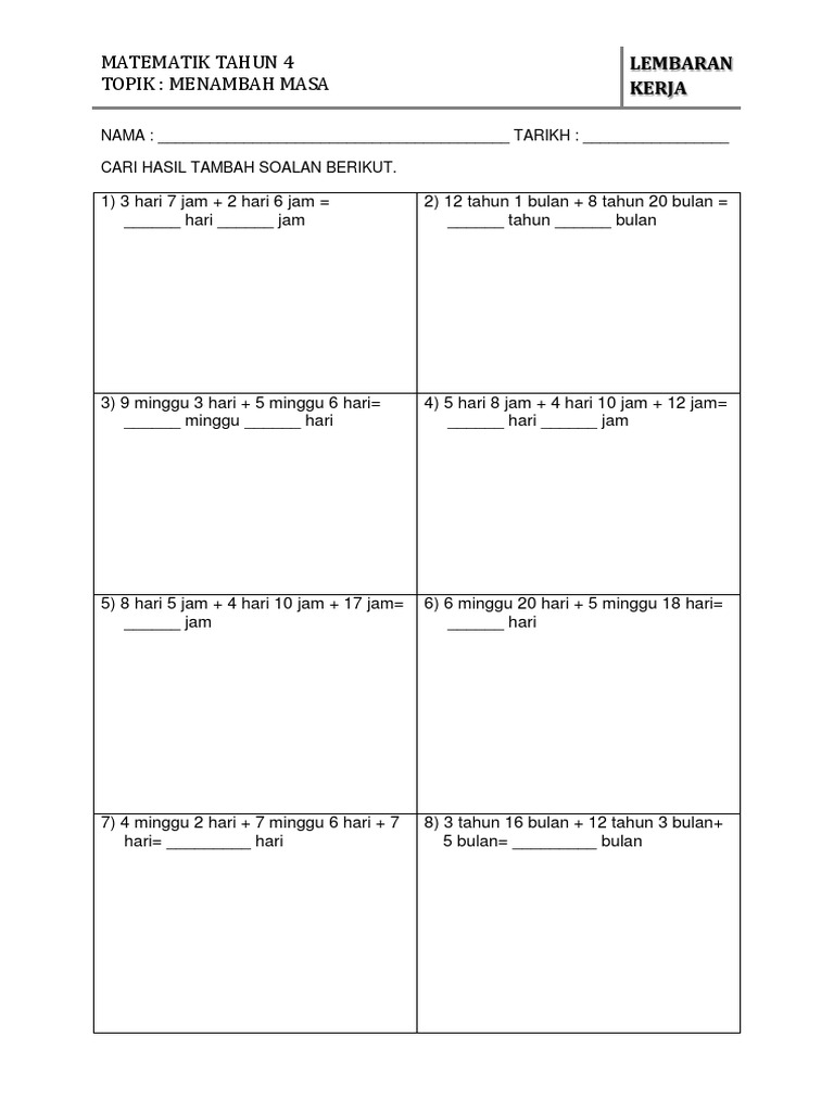 1 jam dan minit2 hari dan jam3 bulan dan tahunpdpr 24 jun 2021tahun 5 bukharisk felda serting hilir 2. Tambah masa ms 59 Add to my workbooks 0 Download file pdf Embed in my website or blog Add to Google Classroom Add to Microsoft Teams Share through Whatsapp. 10 Apr 2021 di 1400.